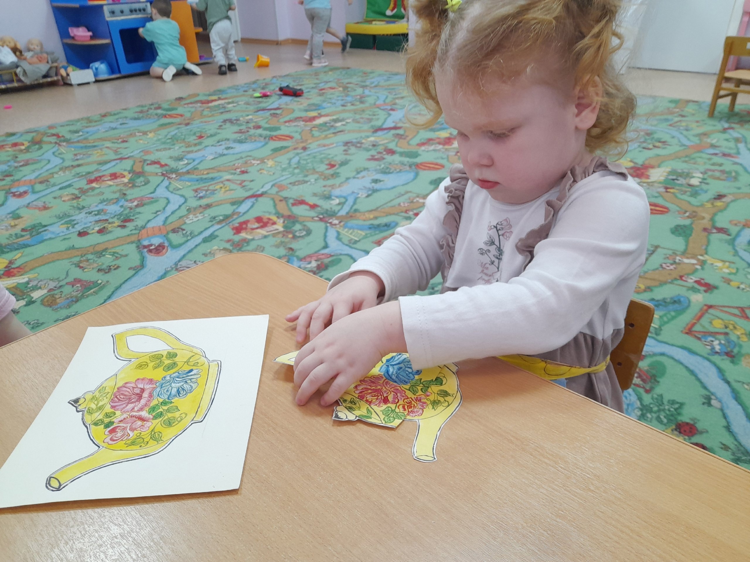 На протяжении всей недели малыши знакомились с посудой, выучили ее название и назначение. Провели беседы: «Такая разная посуда», «Зачем нужна посуда?». Дети познакомились с дидактическими играми «А что в мешочке?», «Разложи по тарелочкам». Обыграли игровые ситуации: «Накормим кукол обедом», «Чаепитие для Мишки», «День рождения куклы Кати», где дети с большим интересом готовили кашу, чай, пирожки. Малыши с интересом выполняли элементы дыхательной гимнастики «Остудим горячий чай».