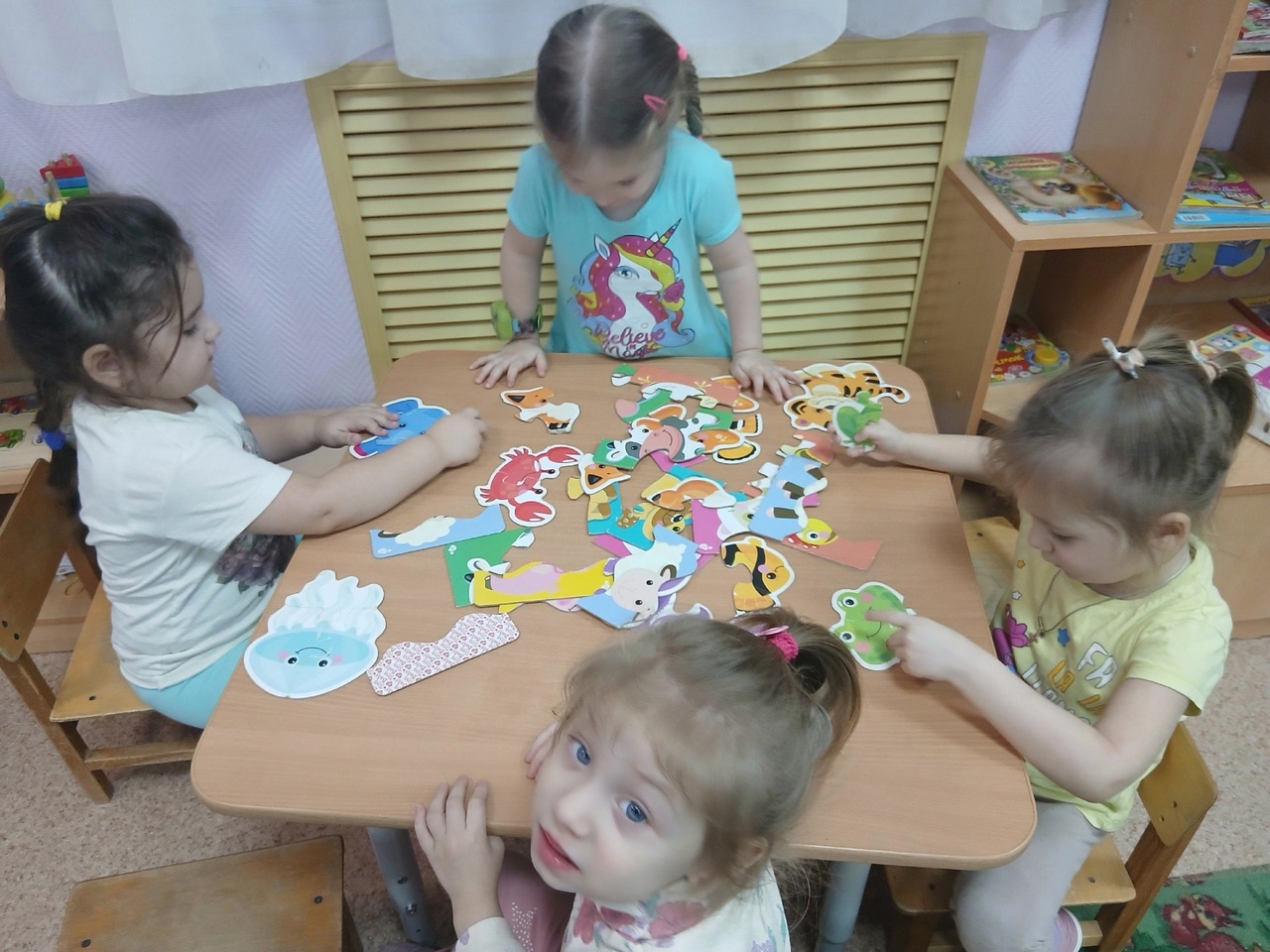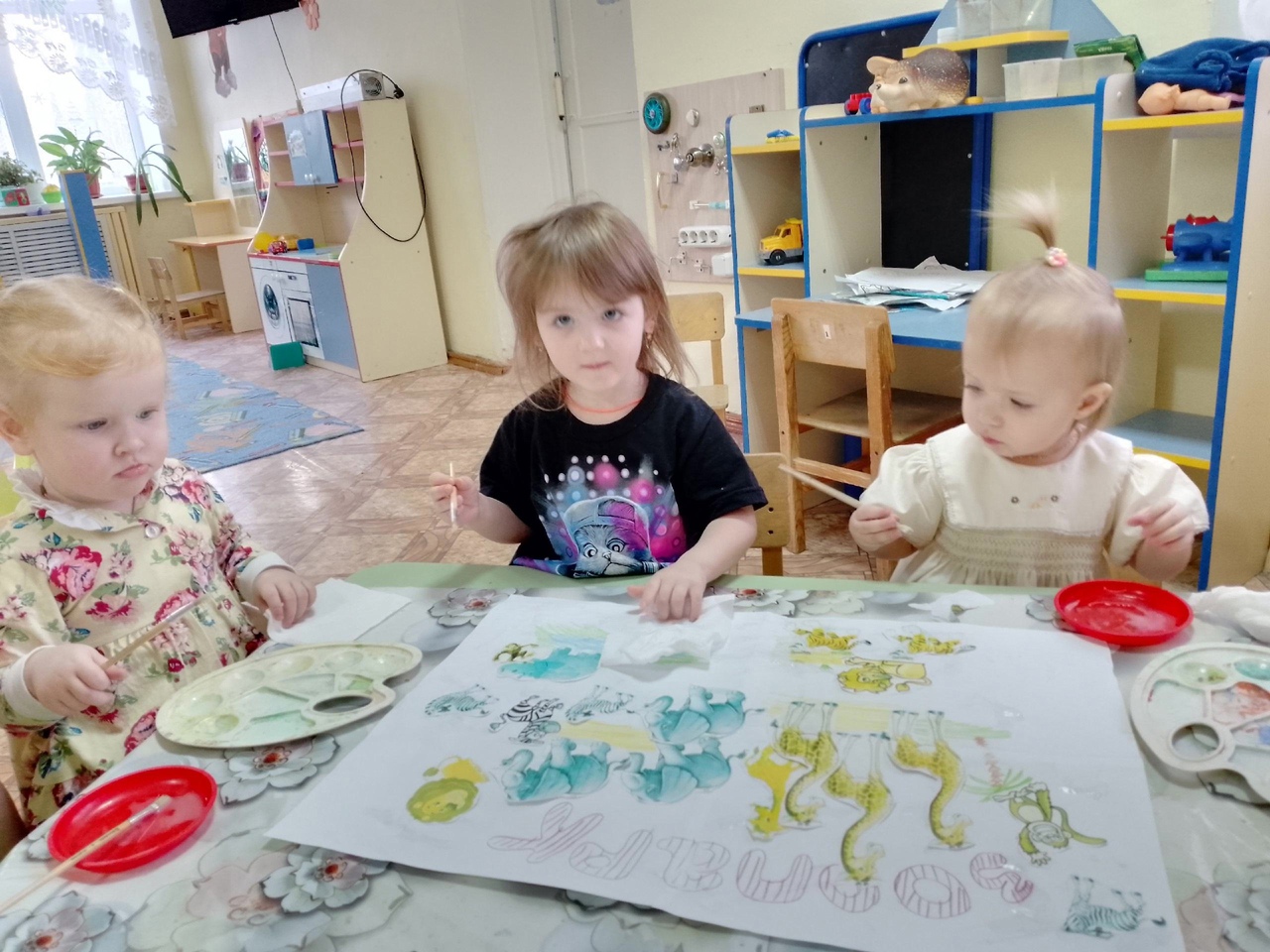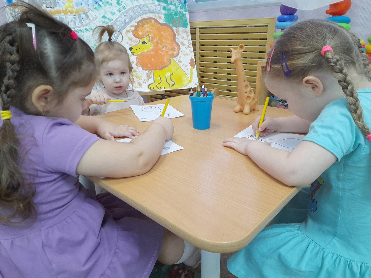 У ребят младших групп прошла неделя «Зоопарк». Дети рассматривали животных жарких стран, играли в игры: «Собери из частей», кубики, пазлы, собирали и закрепляли части мордочек (глаза, нос, грива), учились шнуровать. Раскрасили жирафа и прикрепили на него пятнышки.