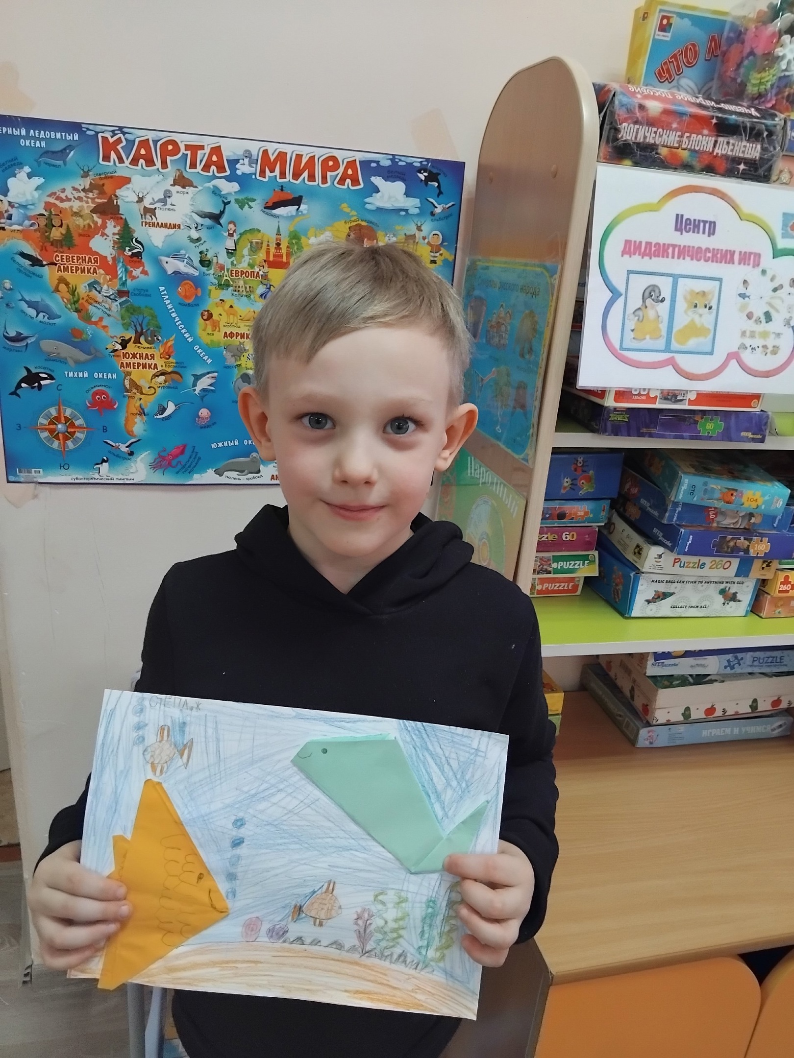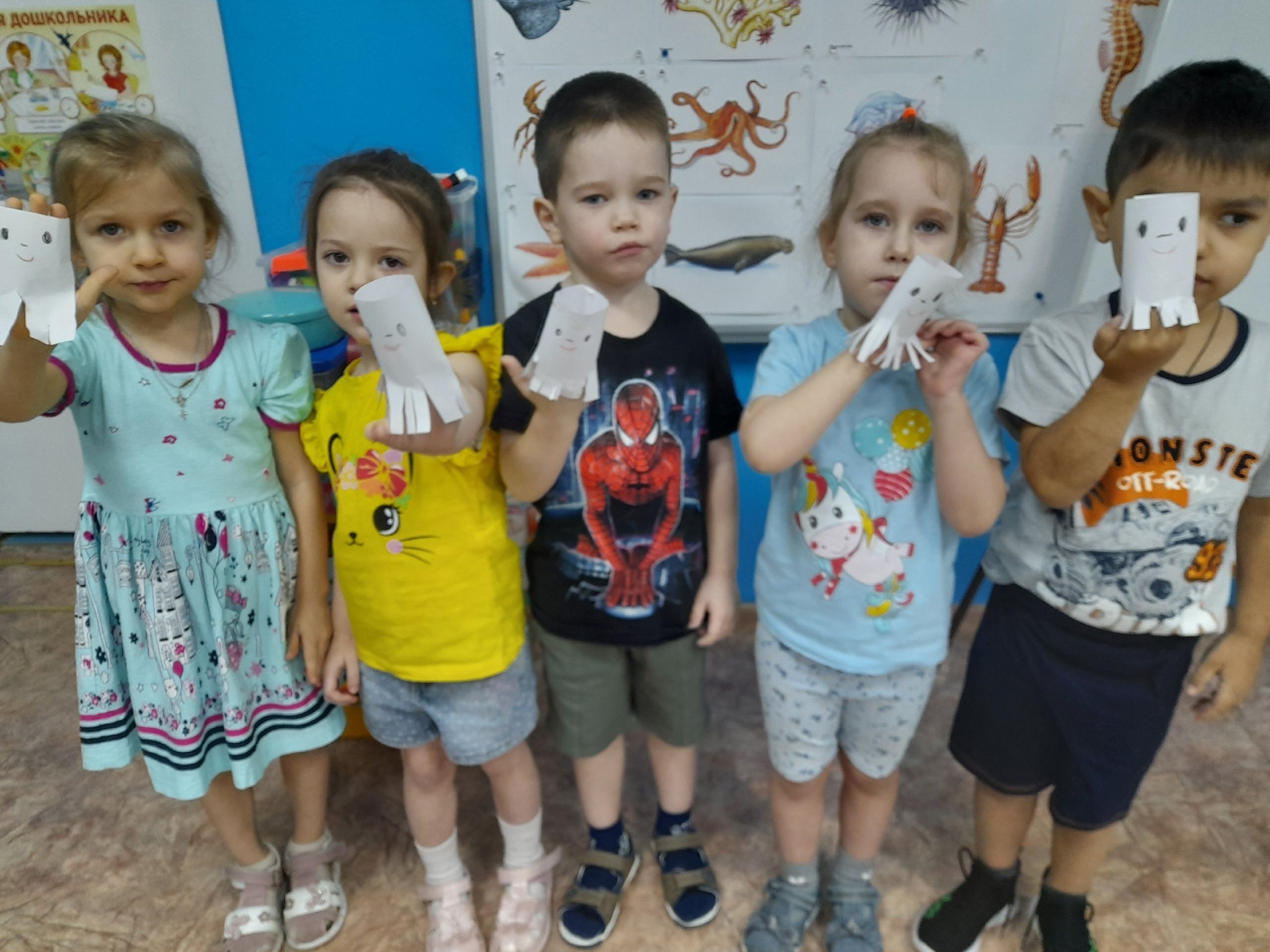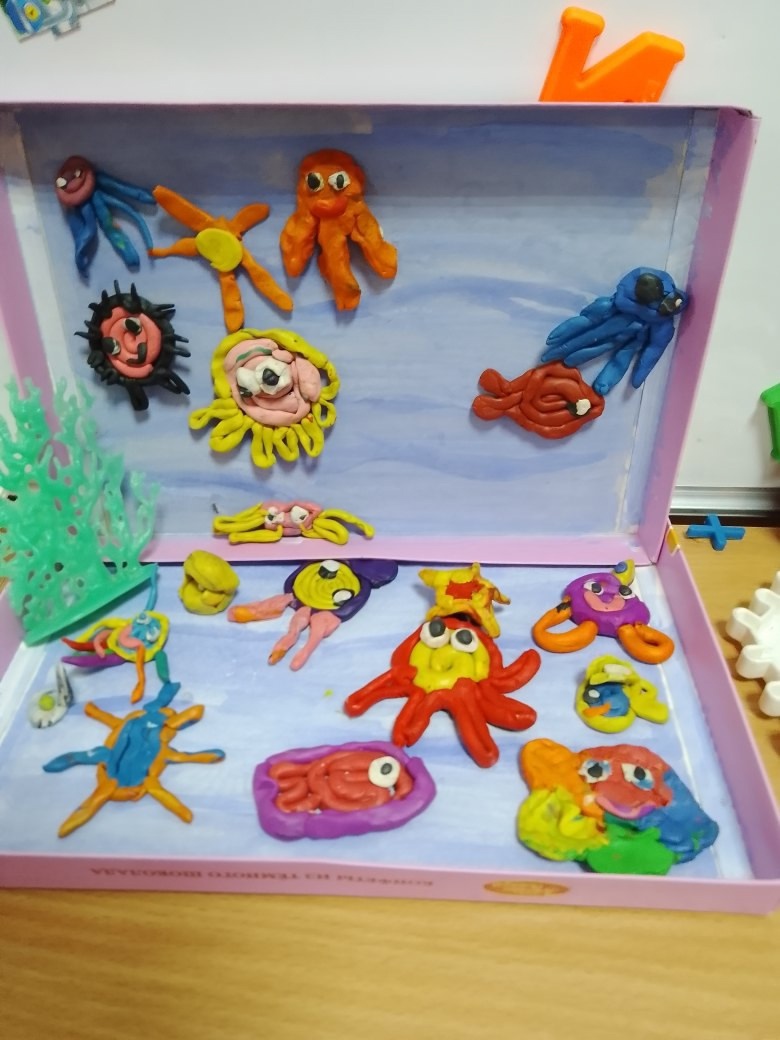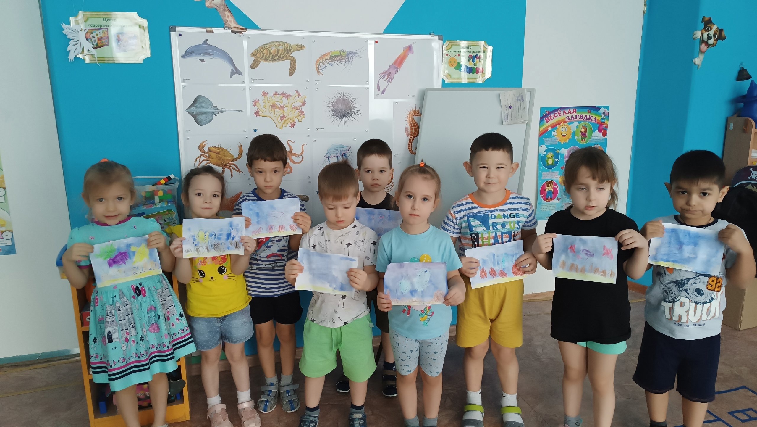 Познавательной и увлекательной выдалась тематическая неделя «Мир морей и океанов», которая прошла в нашем детском саду. Ребята подготовительной группы по теме недели беседовали о том, как устроен подводный мир, кто в нем обитает. Рассуждали, чем отличаются моря и реки. Узнали, что на нашей планете всего четыре океана и совершили подводное путешествие, рассматривая, какие рыбы в нем живут. Рисовали картину «Парус в море», мастерили «Медуз». Узнали о рыбе лосось, которая может жить как в морской, так и в пресной воде. Совершили путешествие из океана в реку. Играли в игру «Водяной». Дети старших групп посмотрели презентацию «Подводный мир». Дети очень удивились, когда увидели внешний вид рыб. В восторге были от рыбы-пилы. На занятии нарисовали синего кита и из бумаги сложили рыбок. Ребята среднего возраста тоже знакомились с удивительным миром подводных обитателей. Рассматривали иллюстрации, картинки с морскими жителями и закрепили свои знания в продуктивной деятельности: рисовали подводный мир в смешанной технике, восковыми мелками и акварелью, лепили разнообразных рыб. В свободное время закрепили умение складывать бумагу и навык работы с ножницами и клеем, смастерили забавных осьминожек.