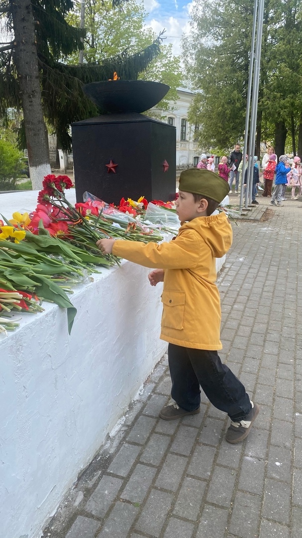 Ребята, воспитатели и родители, возложили цветы к памятнику погибших воинов, почтили память героев минутой молчания.