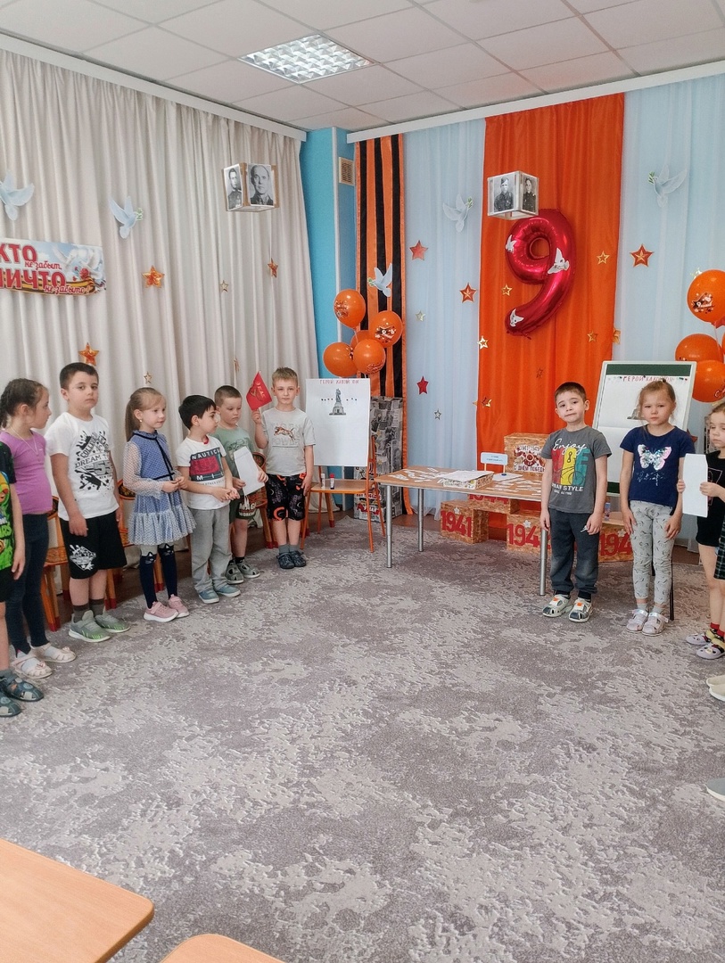 В нашем саду прошла неделя, посвященная дню Победы. Старшие и подготовительные группы провели концерт и спортивный праздник, возлагали цветы к мемориалу «Вечный огонь» , провели квест игру «По военной дороге», посвященный этому знаменательному празднику. Дети младших групп делали открытки ко дню Победы. Мы стараемся воспитывать у детей чувства уважения к ветеранам и защитникам Отечества, гордость за свою Великую Родину. Никто не забыт, ничто не забыто.