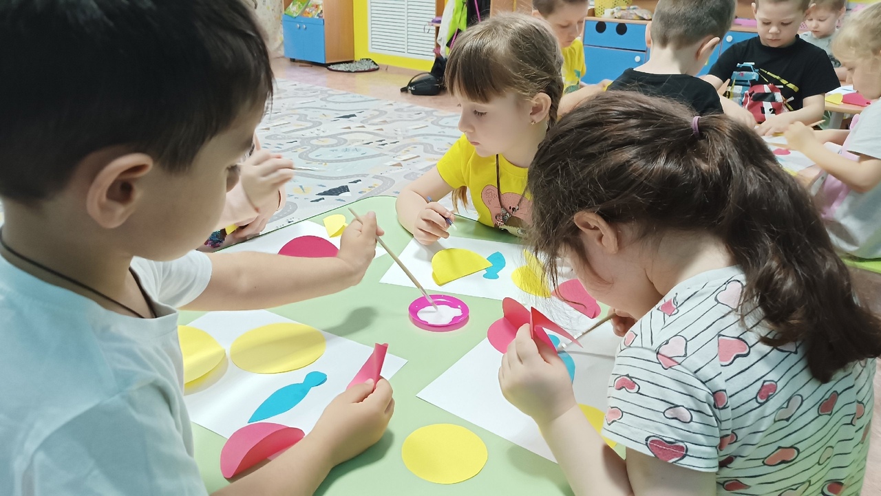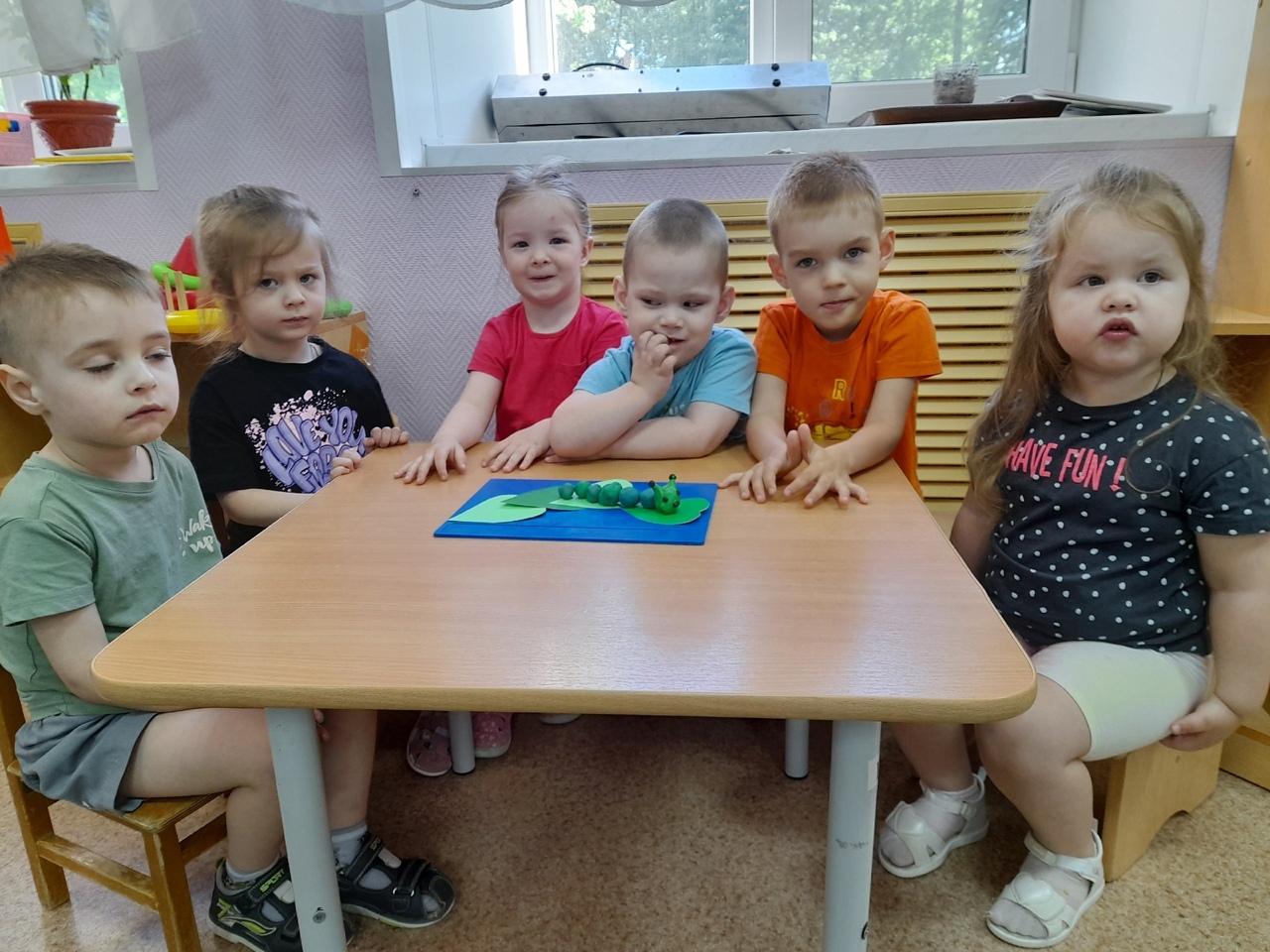 Свои впечатления, полученные от мира насекомых, дети смогли выразить в собственном творчестве. Они выполнили работы по художественному творчеству: коллективная работа «На лугу», лепка «Гусеница», рисование «Насекомые».