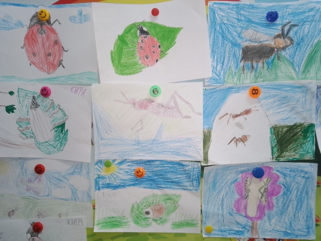 Дети с интересом рассматривали иллюстрации с изображением различных насекомых, смотрели презентации «Насекомые наши друзья», пели и читали потешки про божью коровку и про кузнечика.