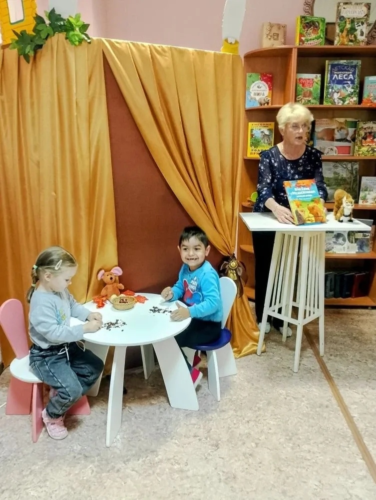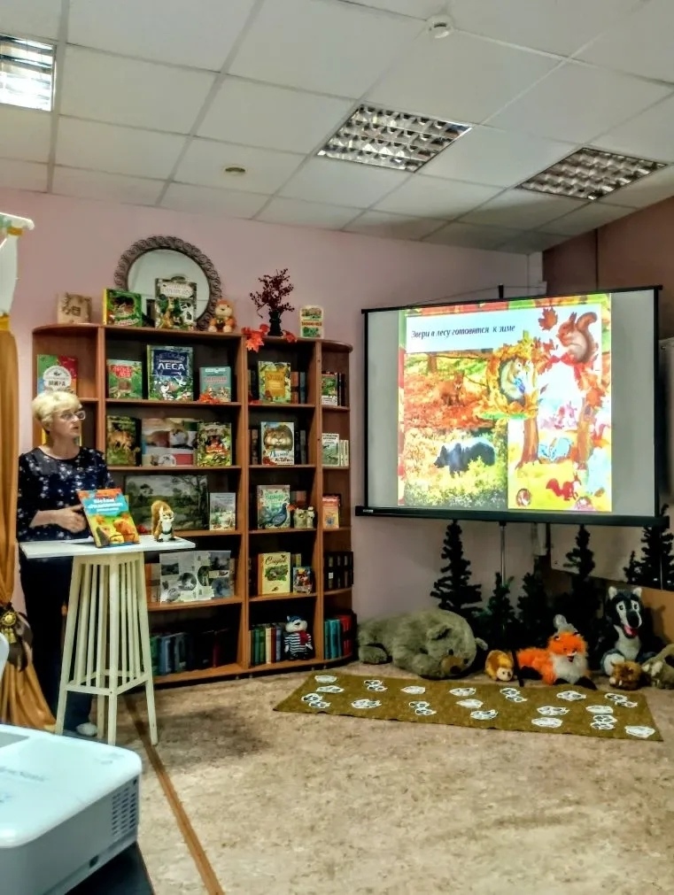 В рамках тематической недели ребята из группы «Весёлая семейка» посетили детскую библиотеку. Для дошколят была организована познавательно — игровая программа «Осенние хлопоты зверей». Дети умножили свои познания о животных: кто меняет шубку, как готовят запасы на зиму, а кто ложится в спячку.