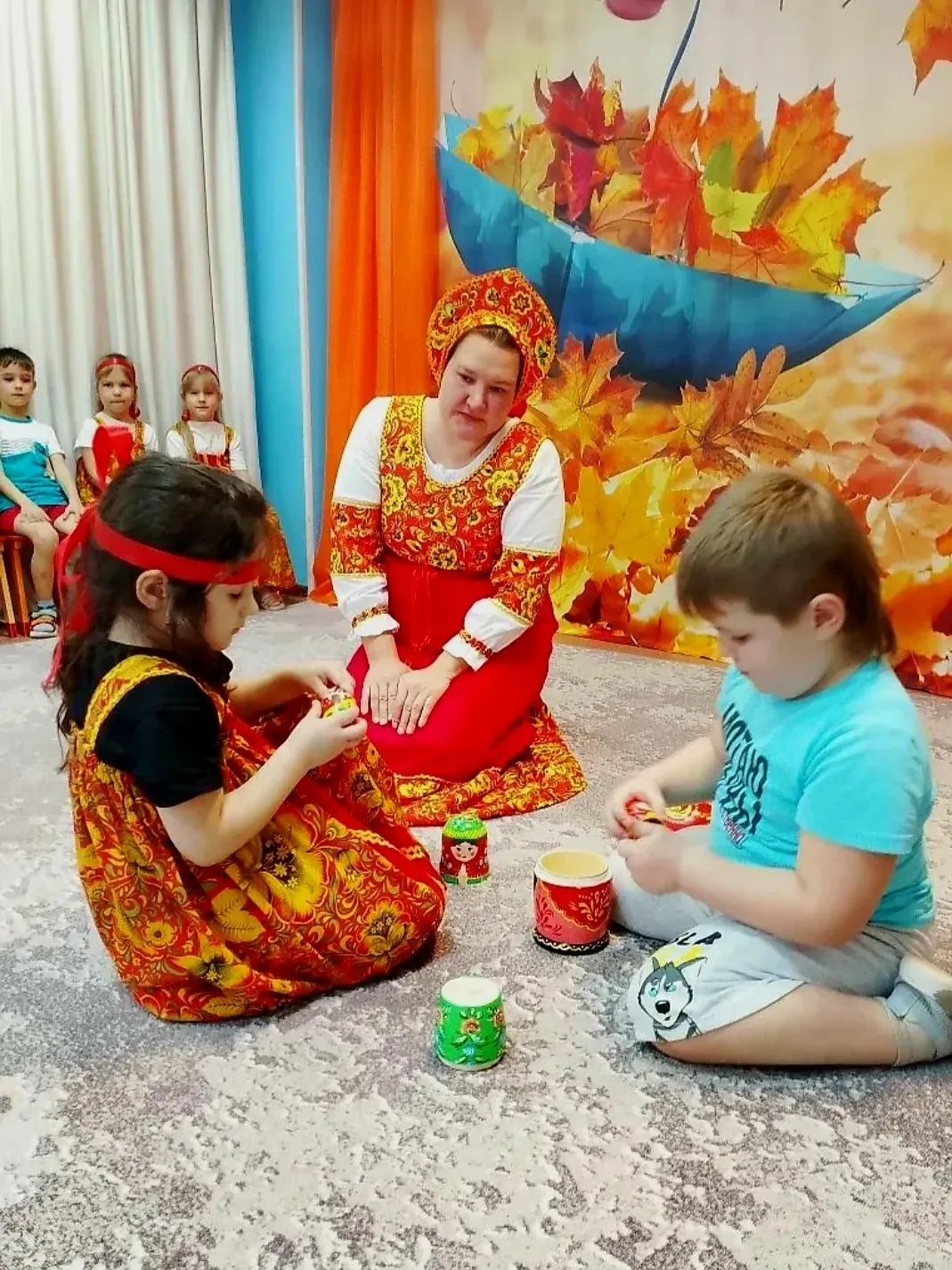 У нас снова праздник — удивительный День Матрёшки! Матрёшка – это не просто игрушка, а настоящий символ русской культуры и искусства. Почему так полюбили эту куклу? Потому что она особенная — разбирается на две части. Снимешь верхнюю и увидишь — внутри ещё кукла. Бывает матрёшка в матрёшке и всё, а иногда шестьдесят в одну уместить ухитряются!!! Бывают матрёшки и в рост первоклассника. Ребята старшей и подготовительной групп узнали об истории русской матрёшки, водили хоровод, рисовали на воздушных шарах лицо главной героини, играли в разные подвижные игры