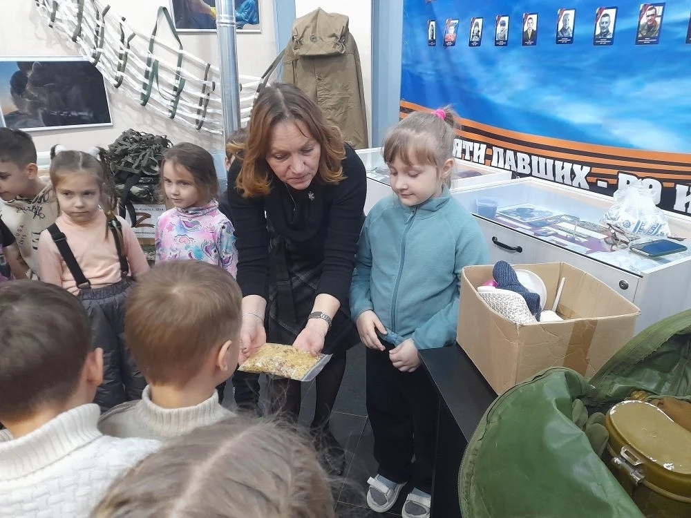 2 декабря группа «Солнечные лучики» посетила музей имени Фрунзе. Дети посмотрели зал, где собраны вещи, относящиеся к Специальной военной операции. Ребята собирали тактический рюкзак, который необходим нашим бойцам в зоне боевых действий. Увидели миномёт, обломки БПЛА, плели маскировочную сеть. Так же переносили человека на волокушах, представив настоящее поле боя.