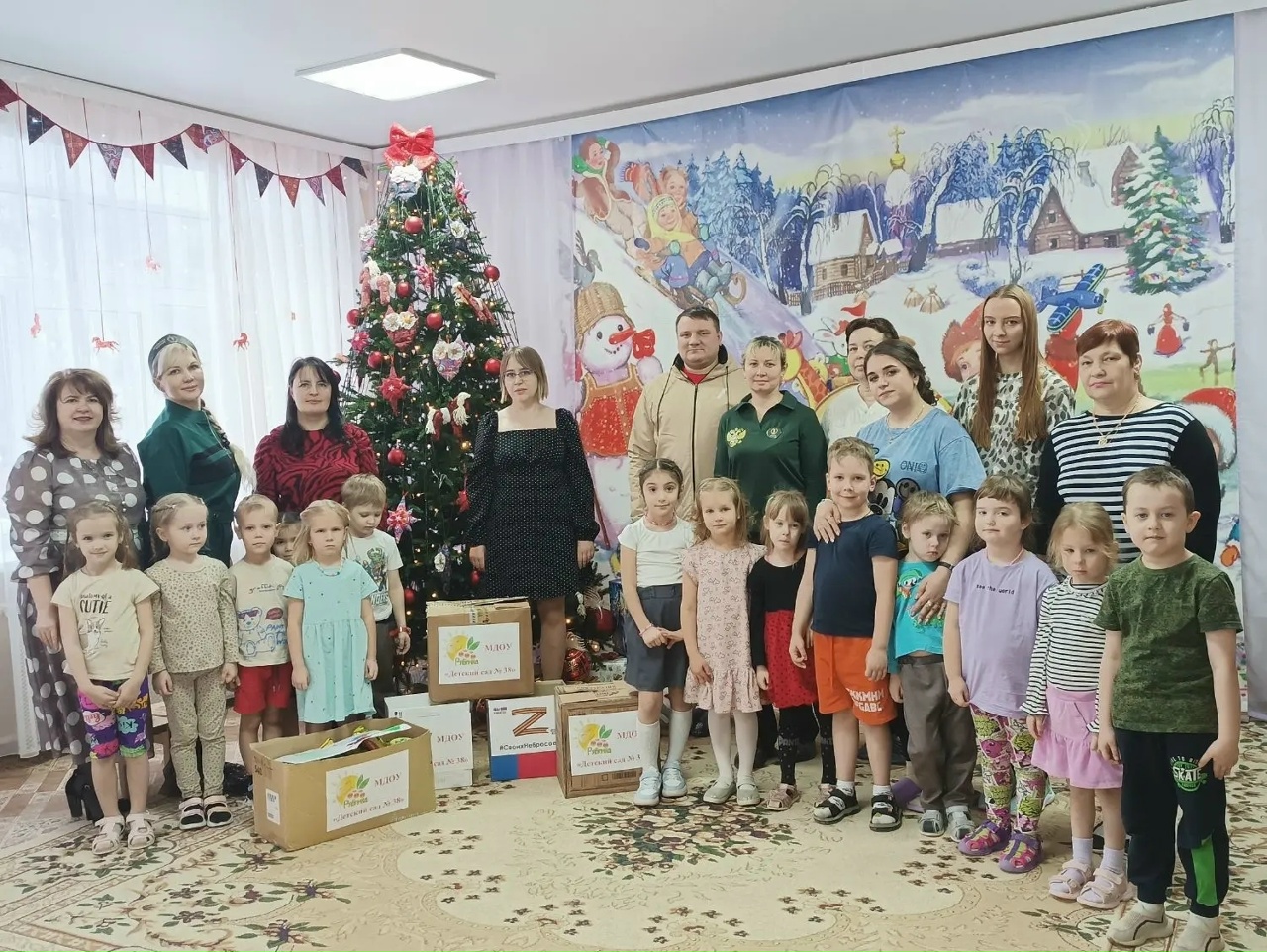 29 декабря, в торжественной обстановке, накануне волшебного праздника Нового года, воспитанники, сотрудники и родители МДОУ «Детский сад √38» передали Комитету семей воинов Отечества по городу Шуя гуманитарную помощь. Ребята нарисовали открытки для защитников — участников СВО, вместе с родителями написали им письма со словами поддержки и благодарности. Воспитание патриотических чувств у подрастающего поколения — было и остаётся одной из главных задач в работе наших педагогов. Поддержка воинов, защищающих нашу Родину, способствует сплочению и единению всех людей, и пониманию того, что сила — в единстве народа.