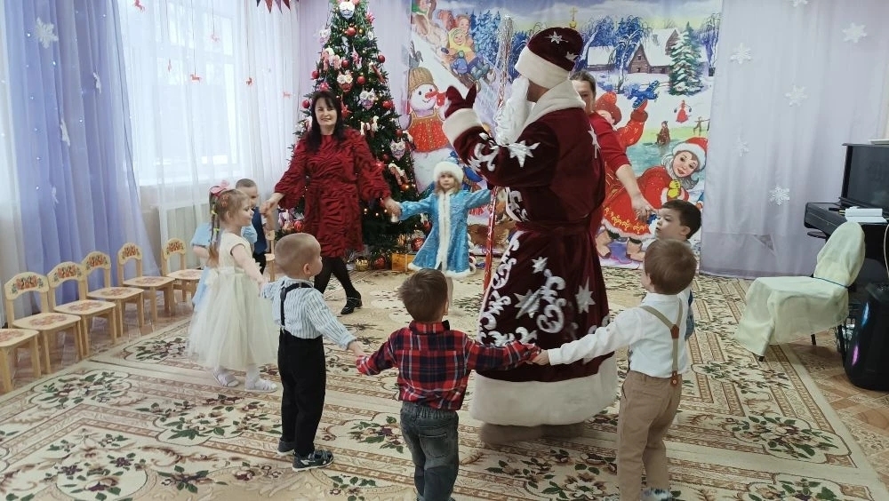 Мы продолжаем новогоднее торжество!Теперь в другом корпусе нашего сада ребята из младшей и старшей групп водили хороводы рядом с шикарной красавицей ёлкой!