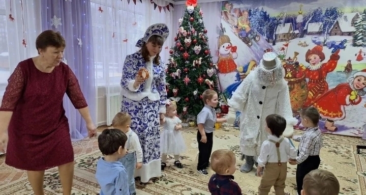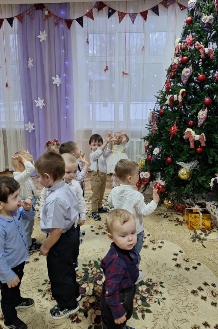 25 декабря прошёл самый первый новогодний праздник у самых маленьких воспитанников «Гномиков». В гости к малышам пришли любимые герои: Снегурочка, Дедушка Мороз и веселый Снеговик. Вместе со Снегурочкой дети зажгли огоньки на главной гостье праздника — яркой и нарядной ёлочке. Ребята с радостью танцевали, играли в снежки и водили хороводы со Снеговиком, а в конце праздника дети получили подарки от Дедушки Мороза. Утренник прошёл в сказочной атмосфере и оставил у малышей много ярких эмоций!