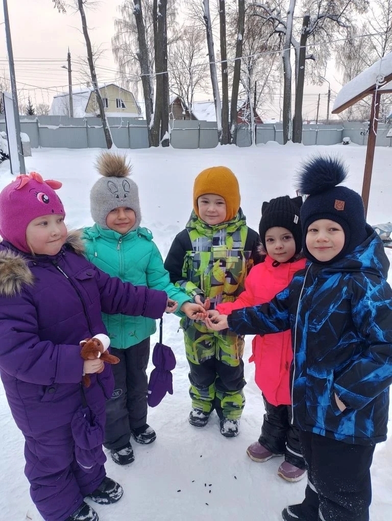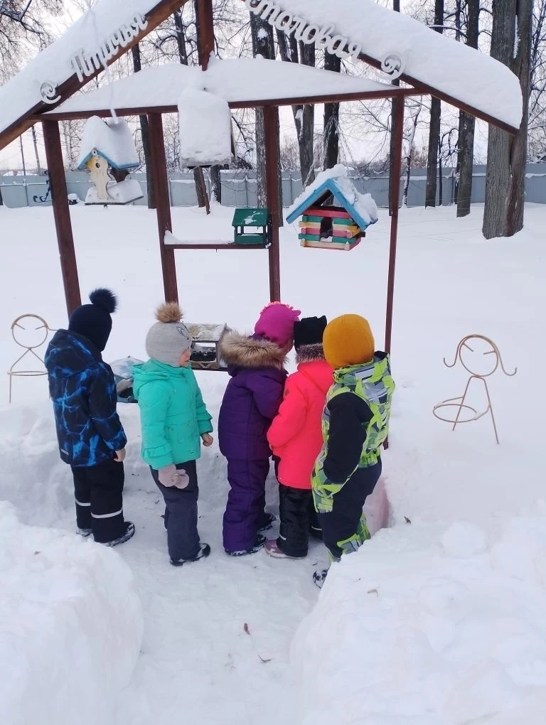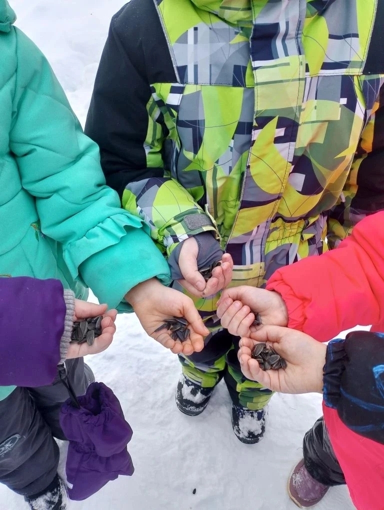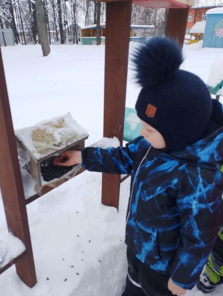 15 января ребята из «Весёлой семейки» с теплотой беседовали о зимующих птицах. Скоро ожидаются морозы и самое время порадовать маленьких птах вкусными семечками. На прогулке, расчистив дорожку к птичей столовой, ребята насыпали семечки. Пусть будет хорошее настроение у птичек, чтоб они радавали нас своими весёлыми песнями.